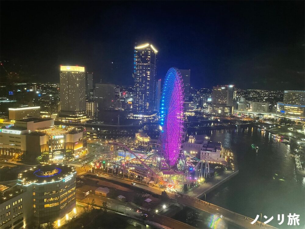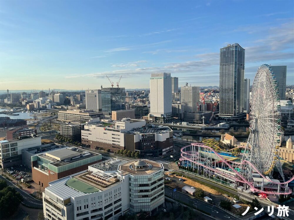 部屋からはコスモワールドの大観覧車や赤レンガ倉庫を中心にみなとみらいの景色を一望できます。