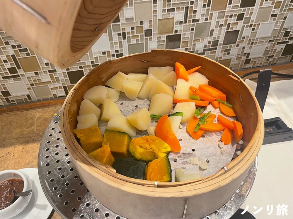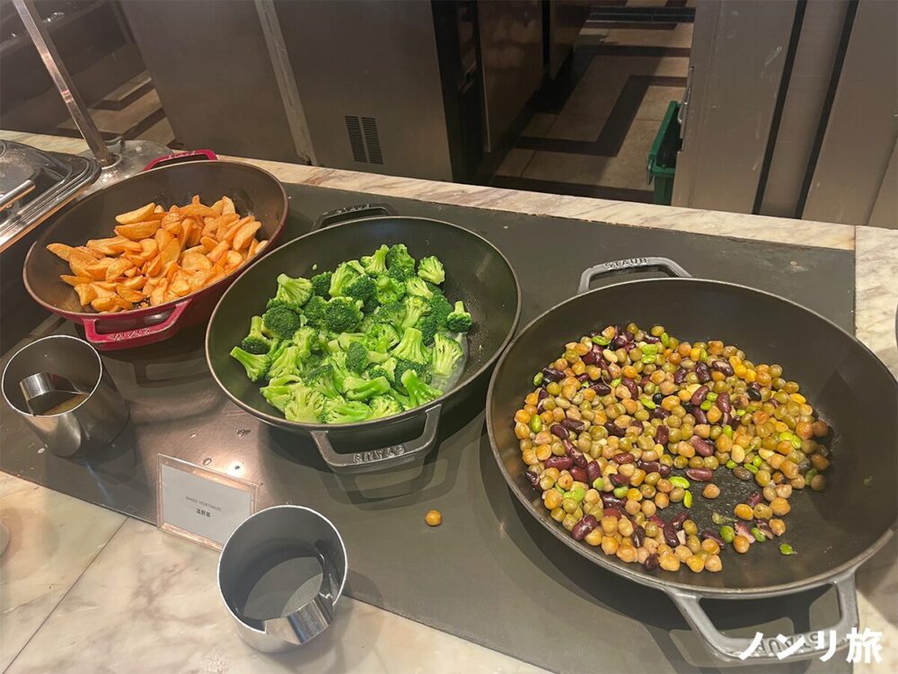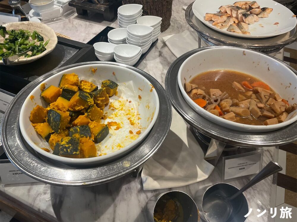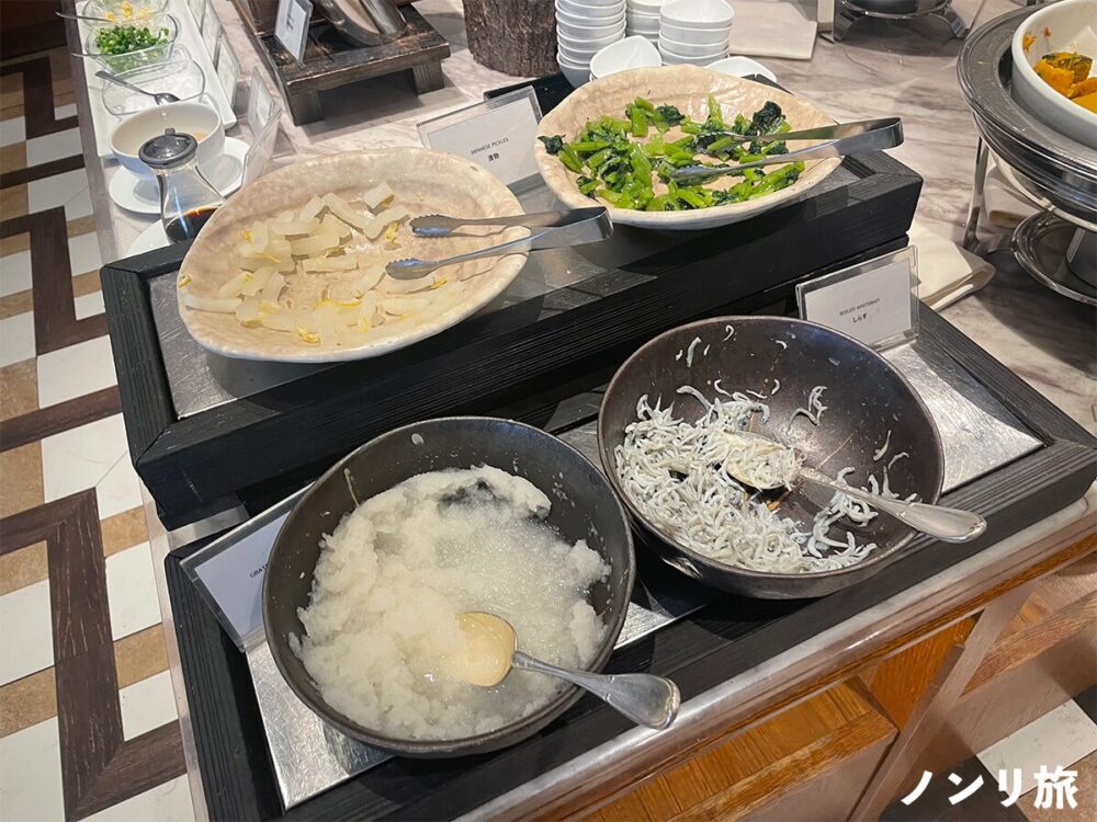 煮物はもちろん、漬物やシラスなどもあり、和食コーナーは想像以上に充実していました。