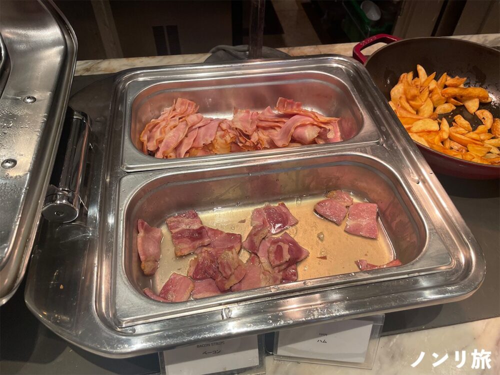ベーコンはスライスしたものと肉厚ジューシーな厚切りの2種類がありました。