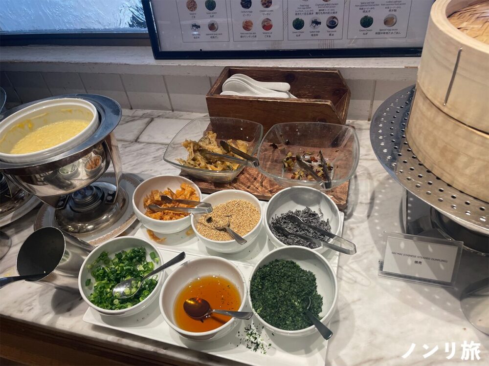 トッピングからお粥にかける餡まで種類が多く、選ぶのも食べるのもたのしい一品です。
