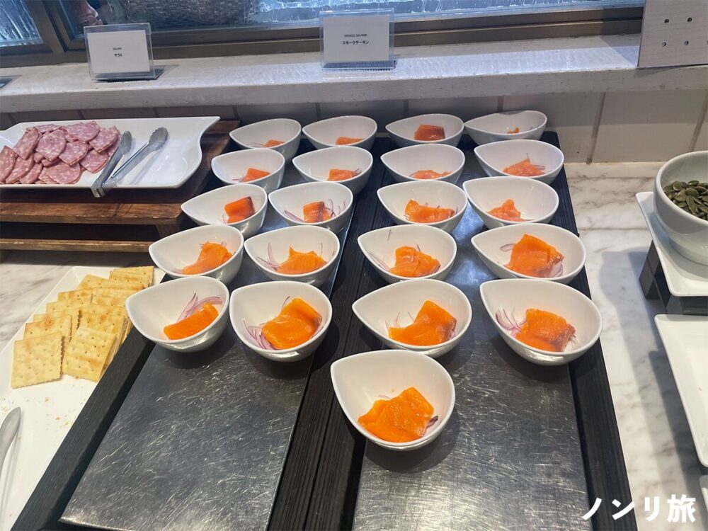 スモークサーモンにチーズ、サラミ、単体でも美味しいですがパンと合わせても絶品です。