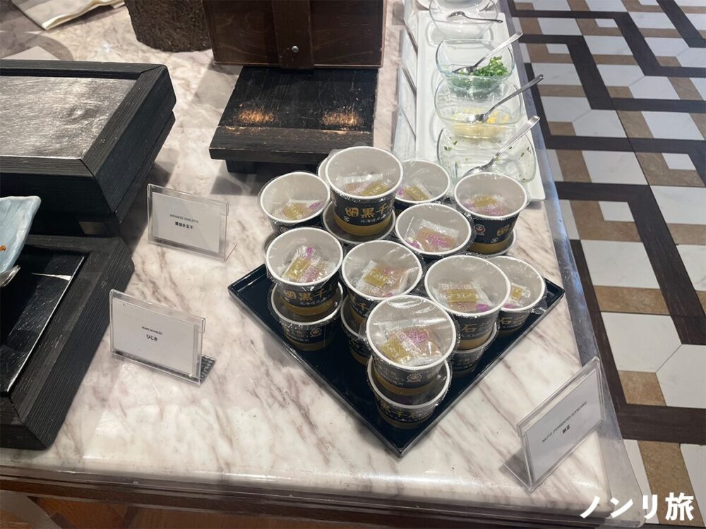 上品な甘みとコクがあり、ご飯との相性も抜群、普通の納豆が多いホテルバイキングでこれは嬉しい誤算です。