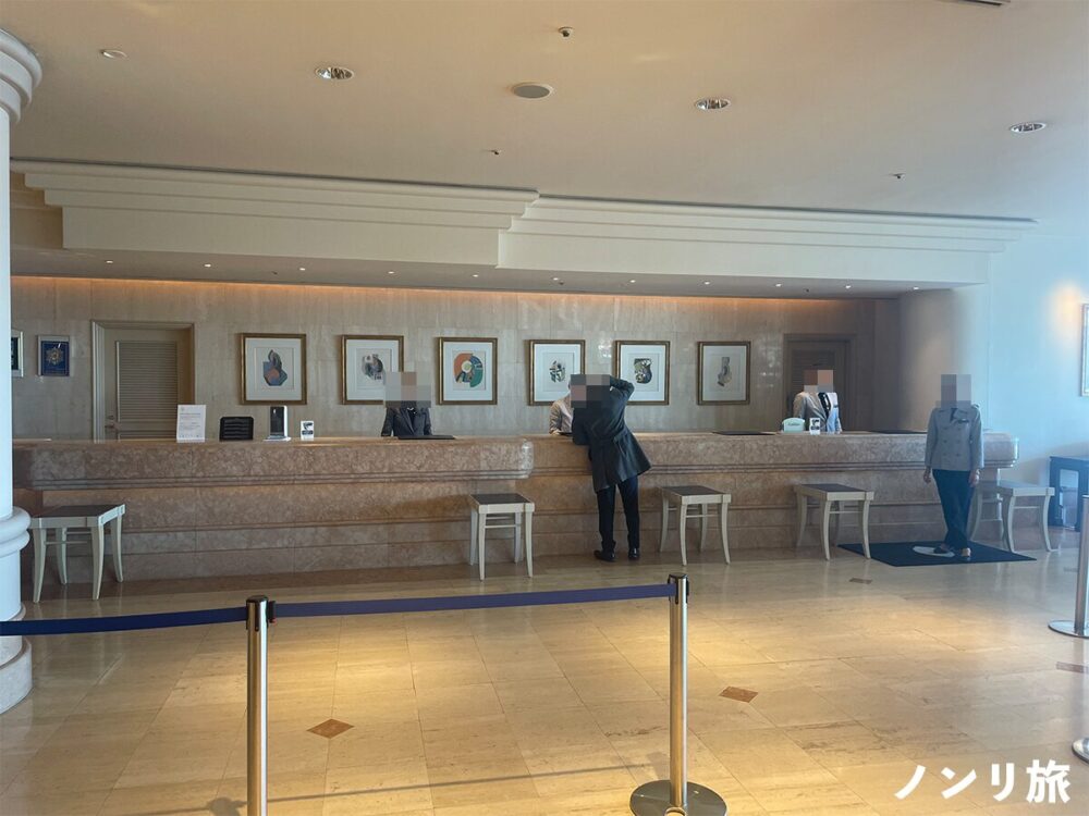 ホテルのチェックインロビーは、開放感あふれる上質で落ち着いた空間が広がっています。