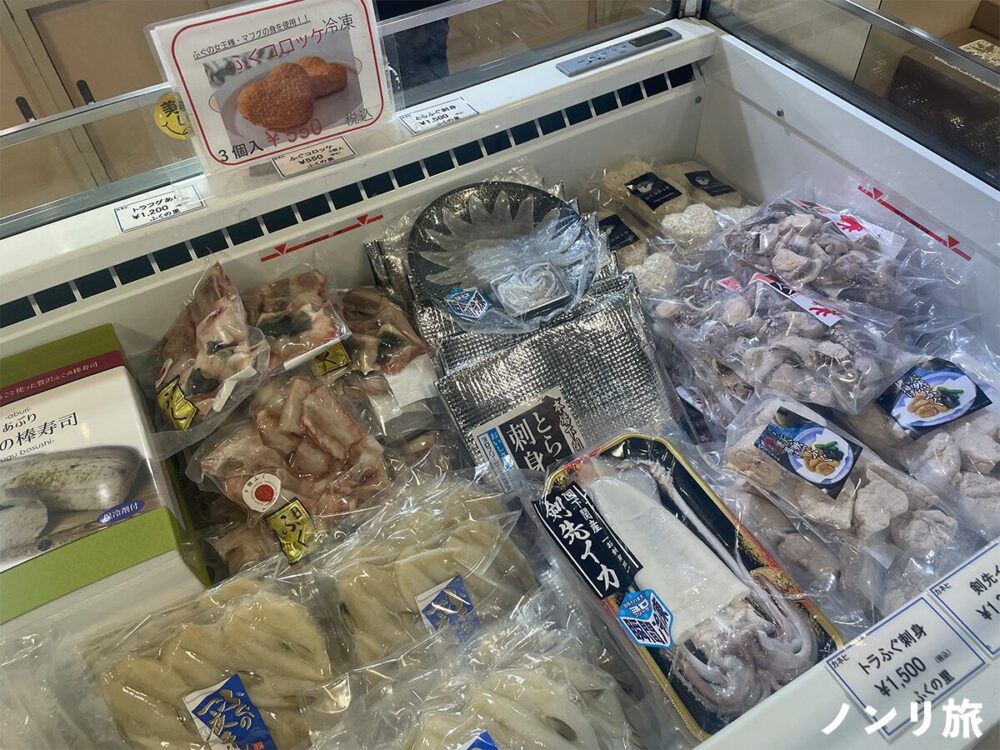 遠方へお土産を贈りたい人も冷凍便が使えるお店がカモンワーフにあるので、フグ鍋セットや刺身を買う方は利用するのもおすすめです、