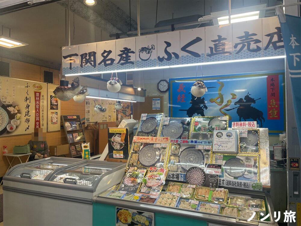 フグ土産はもちろん、山口の銘酒「獺祭」や定番のお菓子など、品揃えも充実しています。