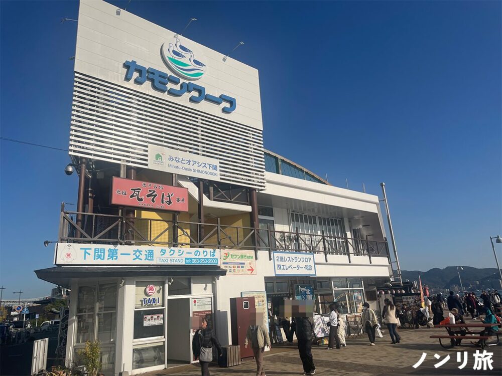 下関観光の最後は、海沿いの商業施設「カモンワーフ」で、下関のお土産を見にいきます。