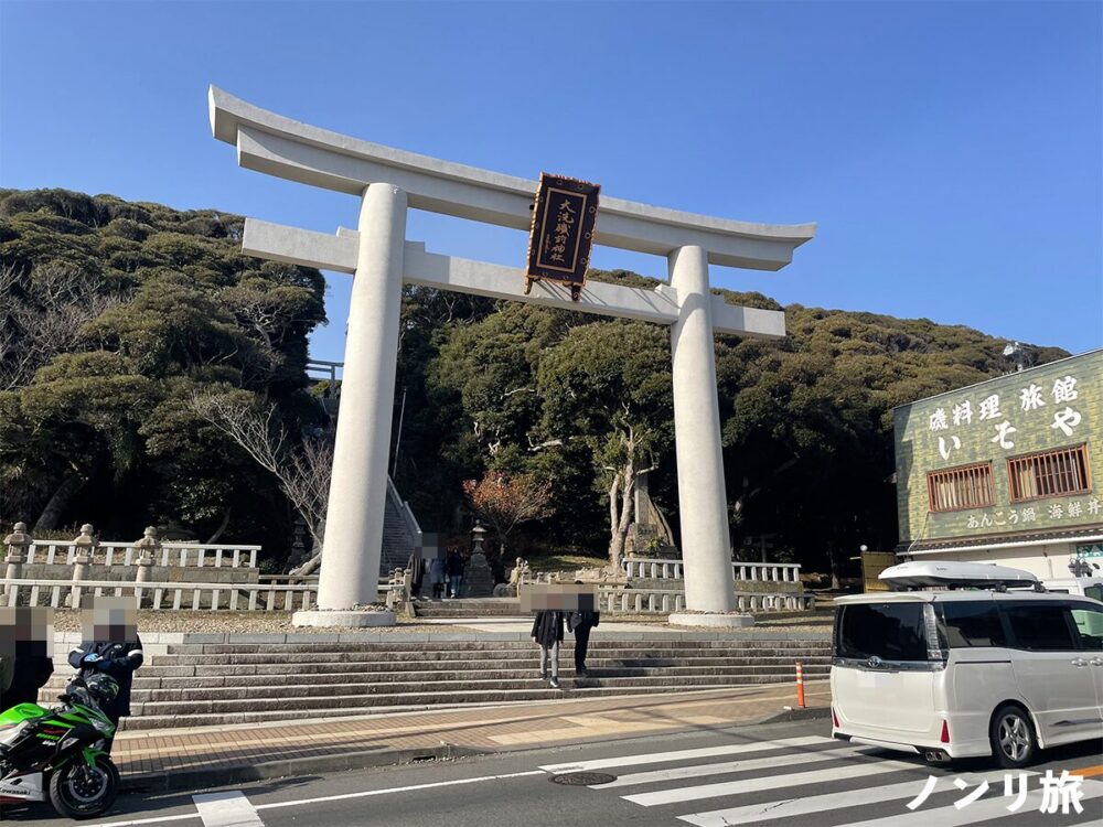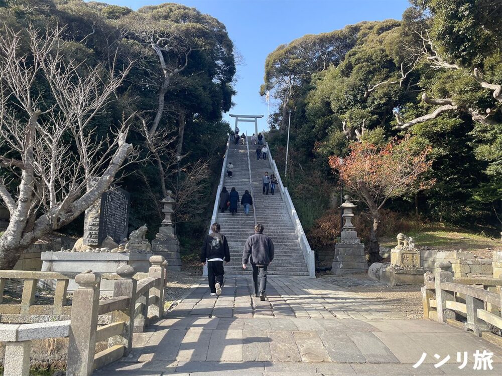 めんたいパークのあとは、歩いて15分のところにある大洗磯前神社へ向かいます。