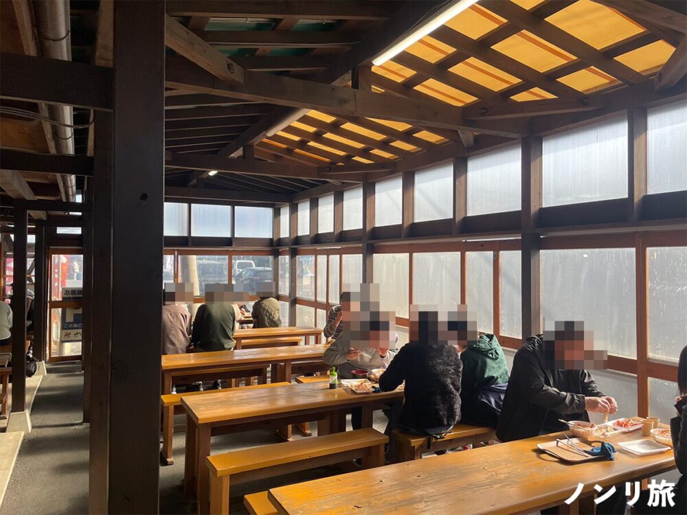 店内では、黙々とカニを食べる人で賑わっています。